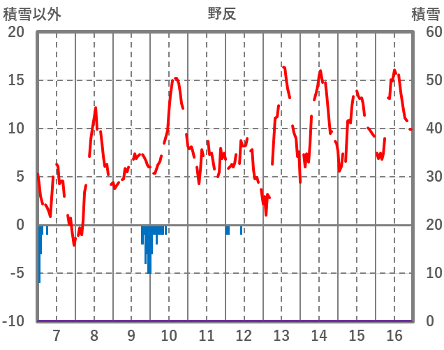 | 日 | 時 | 気温 | 降水 | 風向/風速 | 日照 | 積雪 | 降雪 |