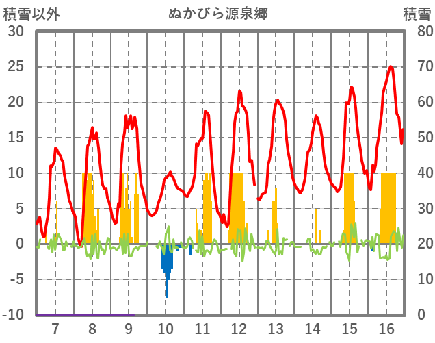 | 日 | 時 | 気温 | 降水 | 風向/風速 | 日照 | 積雪 | 降雪 |