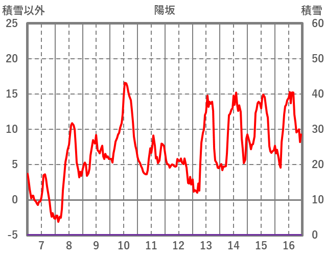 | 日 | 時 | 気温 | 降水 | 風向/風速 | 日照 | 積雪 | 降雪 |