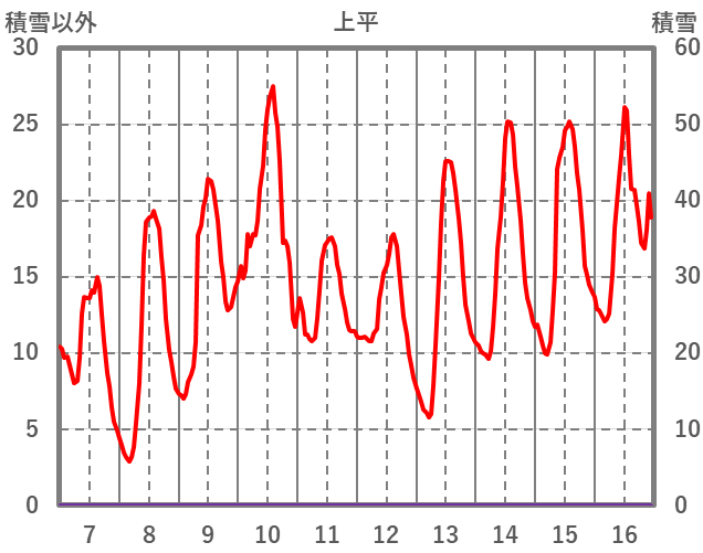| 日 | 時 | 気温 | 降水 | 風向/風速 | 日照 | 積雪 | 降雪 |