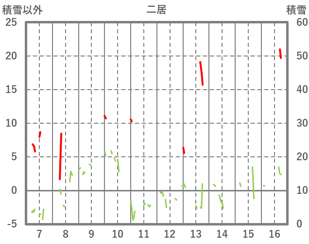| 日 | 時 | 気温 | 降水 | 風向/風速 | 日照 | 積雪 | 降雪 |