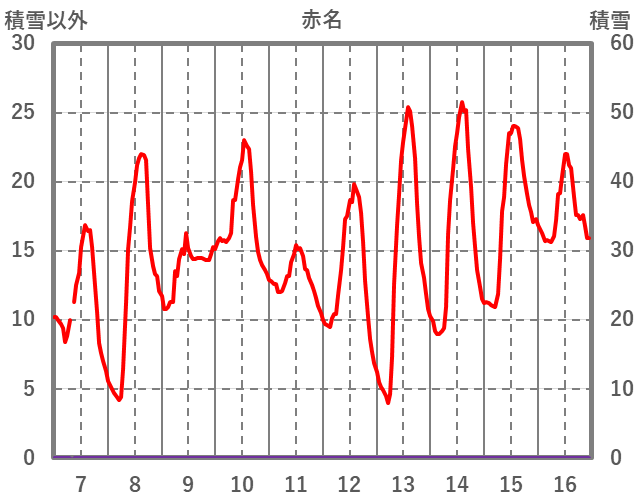 | 日 | 時 | 気温 | 降水 | 風向/風速 | 日照 | 積雪 | 降雪 |