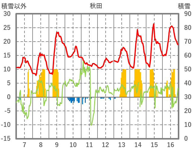 | 日 | 時 | 気温 | 降水 | 風向/風速 | 日照 | 積雪 | 降雪 |