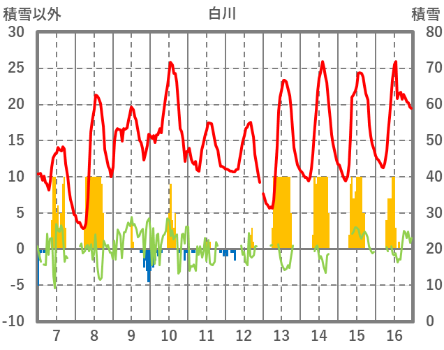 | 日 | 時 | 気温 | 降水 | 風向/風速 | 日照 | 積雪 | 降雪 |