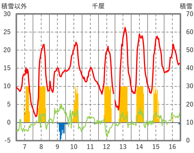 | 日 | 時 | 気温 | 降水 | 風向/風速 | 日照 | 積雪 | 降雪 |