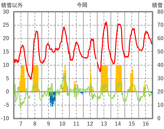 | 日 | 時 | 気温 | 降水 | 風向/風速 | 日照 | 積雪 | 降雪 |