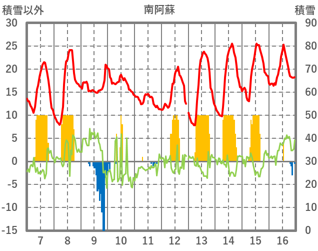 | 日 | 時 | 気温 | 降水 | 風向/風速 | 日照 | 積雪 | 降雪 |