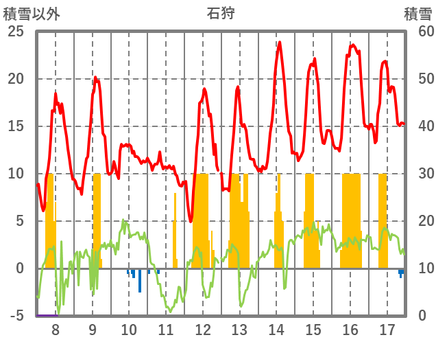 | 日 | 時 | 気温 | 降水 | 風向/風速 | 日照 | 積雪 | 降雪 |