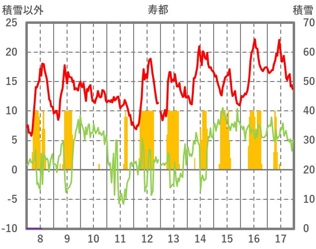 | 日 | 時 | 気温 | 降水 | 風向/風速 | 日照 | 積雪 | 降雪 |