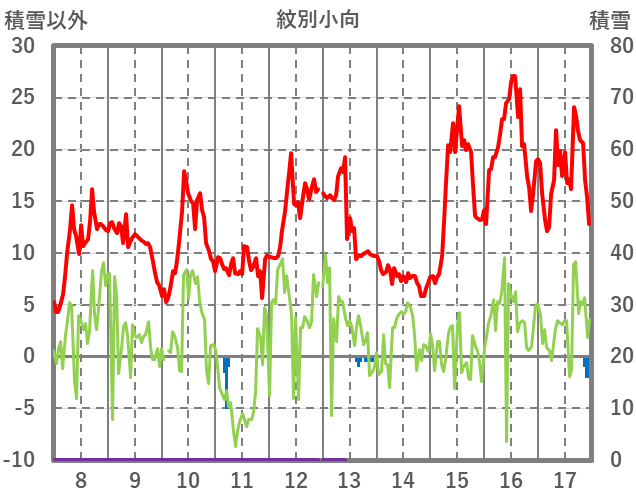 | 日 | 時 | 気温 | 降水 | 風向/風速 | 日照 | 積雪 | 降雪 |