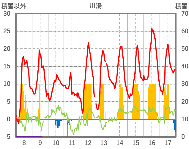 | 日 | 時 | 気温 | 降水 | 風向/風速 | 日照 | 積雪 | 降雪 |