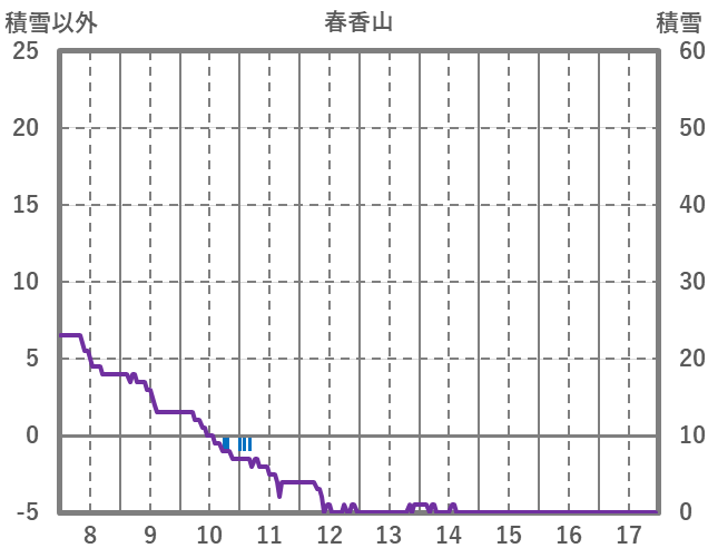 | 日 | 時 | 気温 | 降水 | 風向/風速 | 日照 | 積雪 | 降雪 |