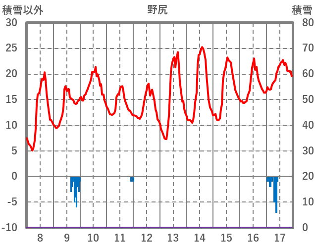 | 日 | 時 | 気温 | 降水 | 風向/風速 | 日照 | 積雪 | 降雪 |