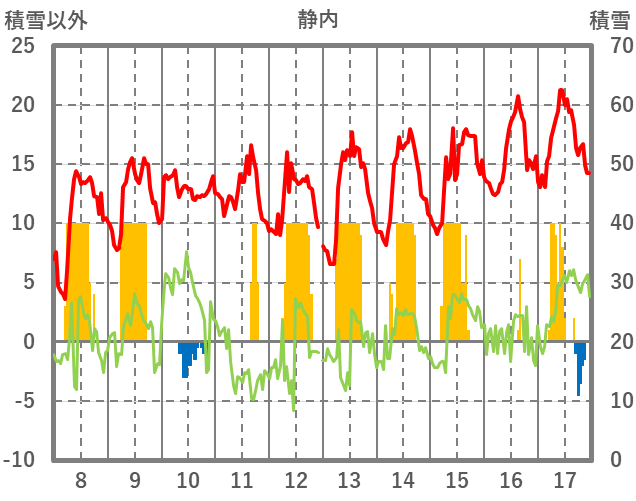 | 日 | 時 | 気温 | 降水 | 風向/風速 | 日照 | 積雪 | 降雪 |