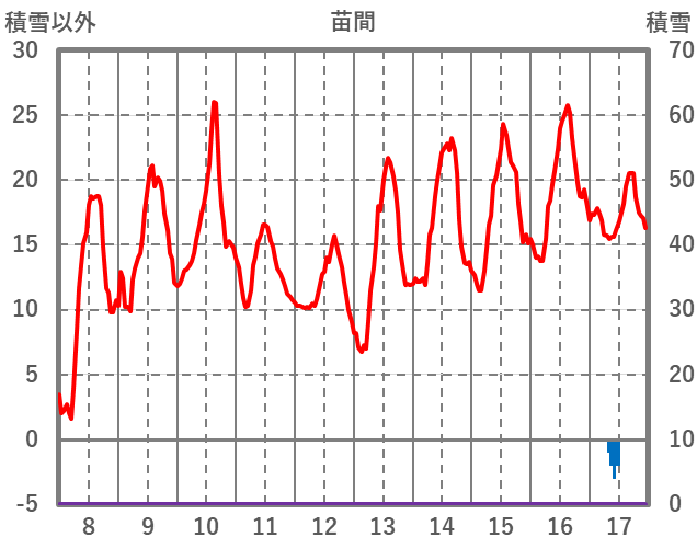 | 日 | 時 | 気温 | 降水 | 風向/風速 | 日照 | 積雪 | 降雪 |
