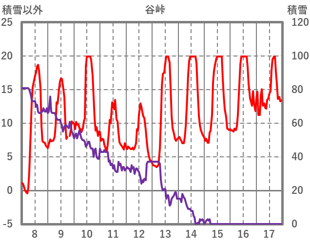 | 日 | 時 | 気温 | 降水 | 風向/風速 | 日照 | 積雪 | 降雪 |