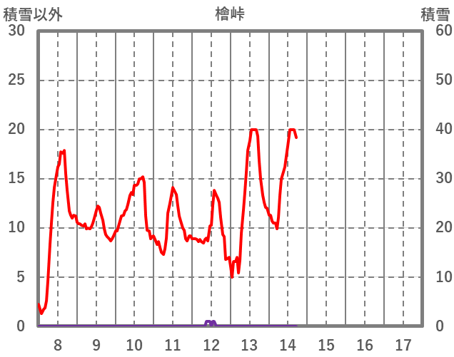 | 日 | 時 | 気温 | 降水 | 風向/風速 | 日照 | 積雪 | 降雪 |
