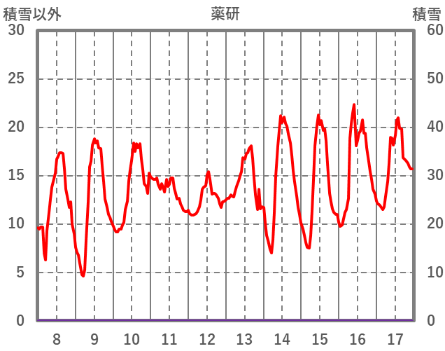 | 日 | 時 | 気温 | 降水 | 風向/風速 | 日照 | 積雪 | 降雪 |
