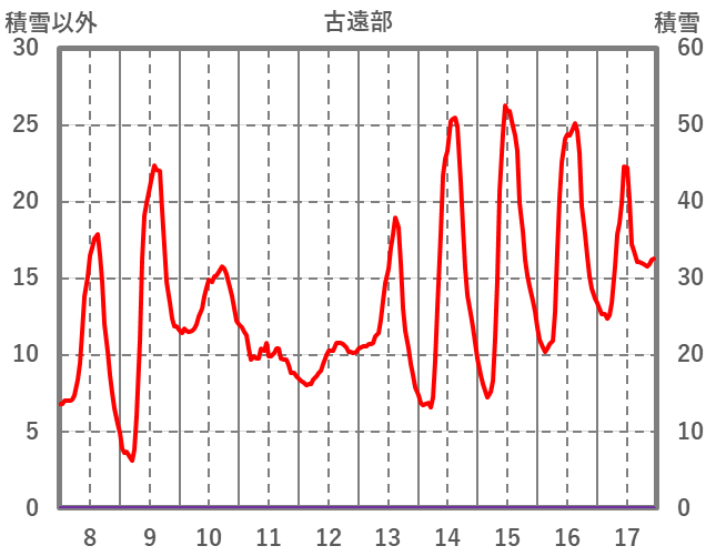 | 日 | 時 | 気温 | 降水 | 風向/風速 | 日照 | 積雪 | 降雪 |