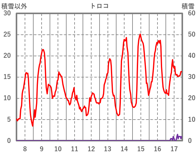 | 日 | 時 | 気温 | 降水 | 風向/風速 | 日照 | 積雪 | 降雪 |