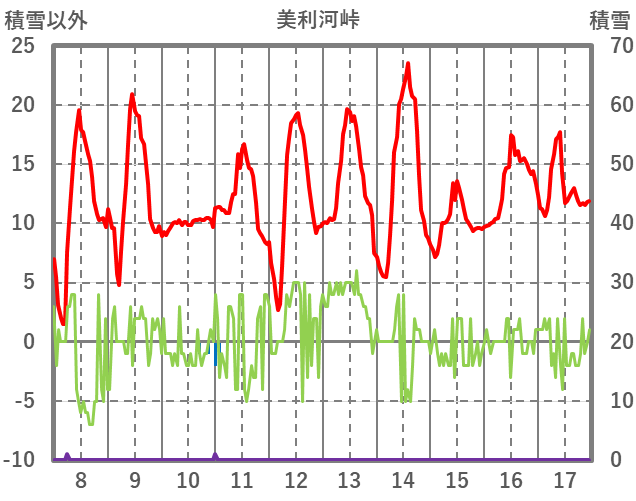 | 日 | 時 | 気温 | 降水 | 風向/風速 | 日照 | 積雪 | 降雪 |
