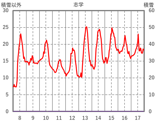 | 日 | 時 | 気温 | 降水 | 風向/風速 | 日照 | 積雪 | 降雪 |