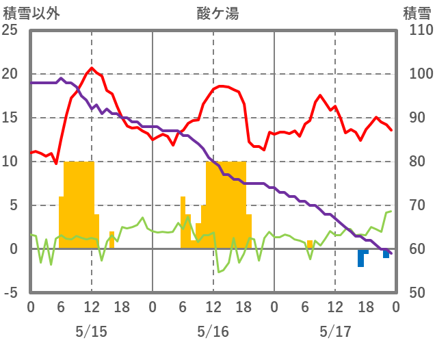 | 日 | 時 | 気温 | 降水 | 風向/風速 | 日照 | 積雪 | 降雪 |