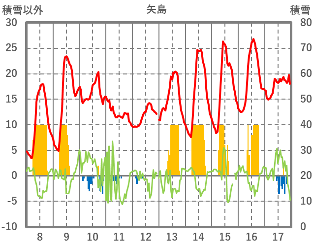| 日 | 時 | 気温 | 降水 | 風向/風速 | 日照 | 積雪 | 降雪 |
