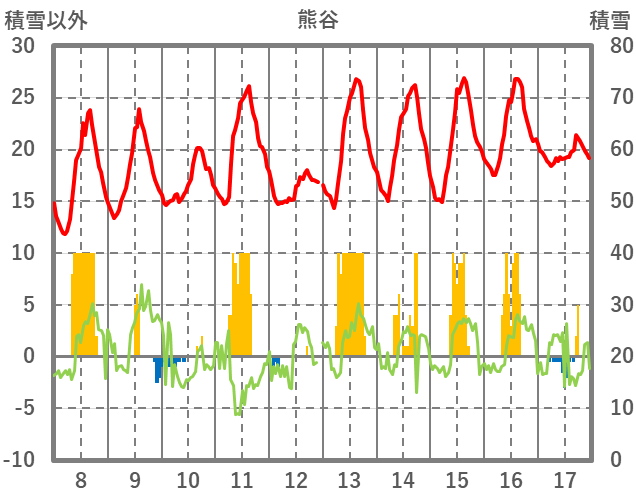 | 日 | 時 | 気温 | 降水 | 風向/風速 | 日照 | 積雪 | 降雪 |