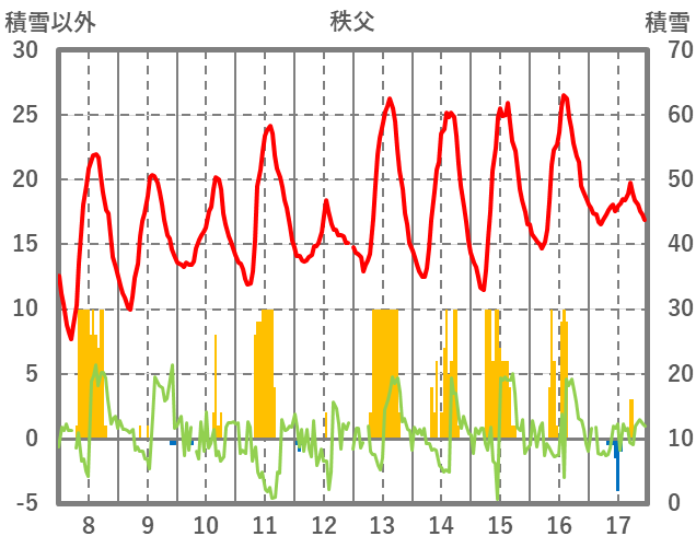 | 日 | 時 | 気温 | 降水 | 風向/風速 | 日照 | 積雪 | 降雪 |