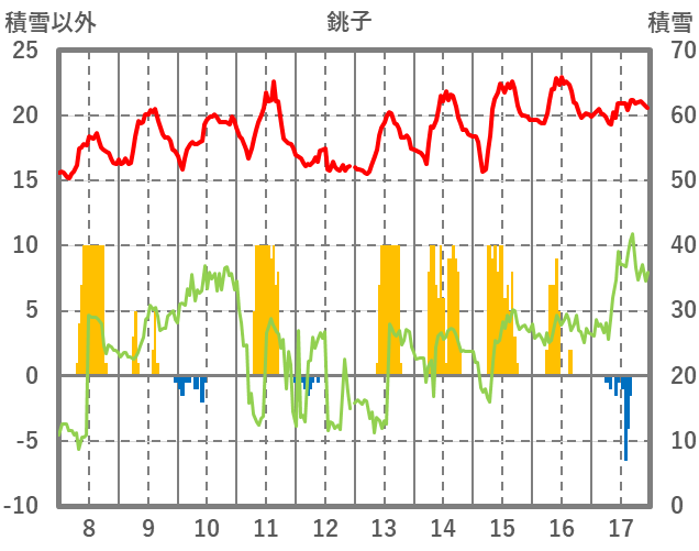| 日 | 時 | 気温 | 降水 | 風向/風速 | 日照 | 積雪 | 降雪 |