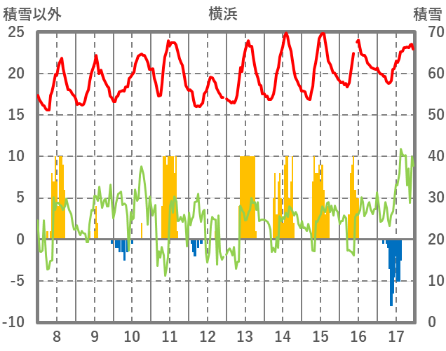 | 日 | 時 | 気温 | 降水 | 風向/風速 | 日照 | 積雪 | 降雪 |
