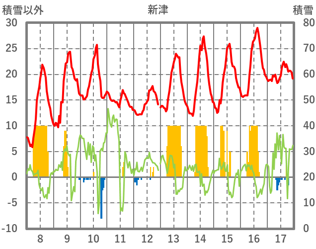 | 日 | 時 | 気温 | 降水 | 風向/風速 | 日照 | 積雪 | 降雪 |