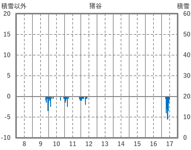 | 日 | 時 | 気温 | 降水 | 風向/風速 | 日照 | 積雪 | 降雪 |