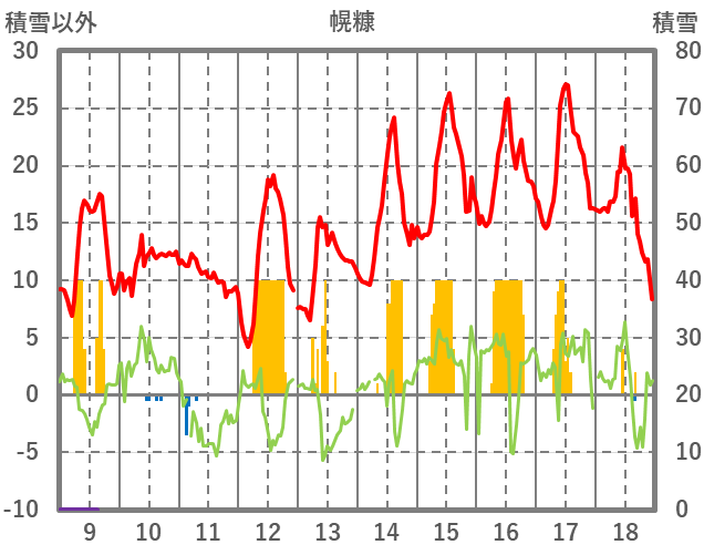 | 日 | 時 | 気温 | 降水 | 風向/風速 | 日照 | 積雪 | 降雪 |