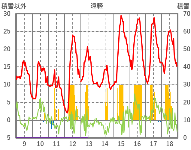 | 日 | 時 | 気温 | 降水 | 風向/風速 | 日照 | 積雪 | 降雪 |