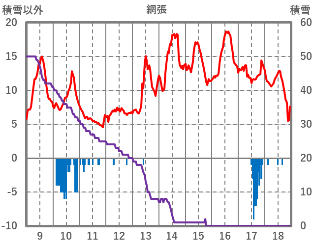 | 日 | 時 | 気温 | 降水 | 風向/風速 | 日照 | 積雪 | 降雪 |