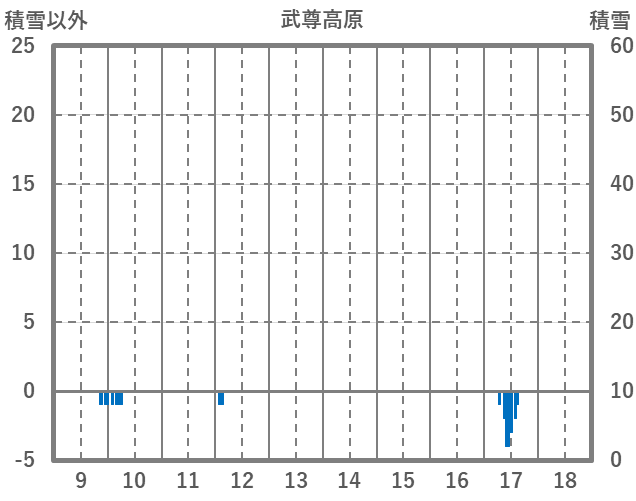 | 日 | 時 | 気温 | 降水 | 風向/風速 | 日照 | 積雪 | 降雪 |