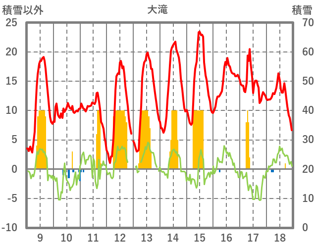 | 日 | 時 | 気温 | 降水 | 風向/風速 | 日照 | 積雪 | 降雪 |