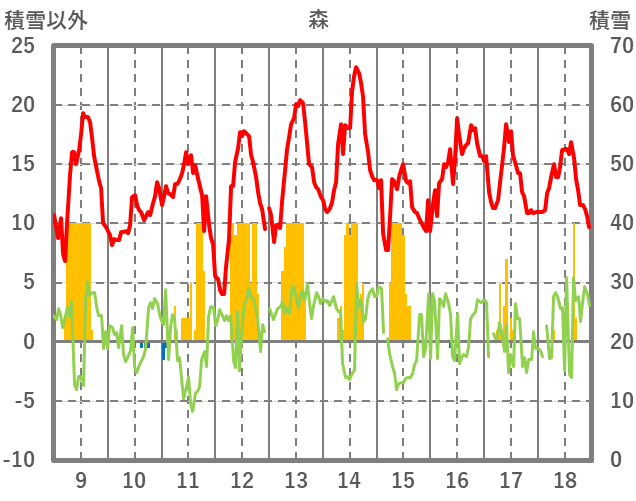 | 日 | 時 | 気温 | 降水 | 風向/風速 | 日照 | 積雪 | 降雪 |