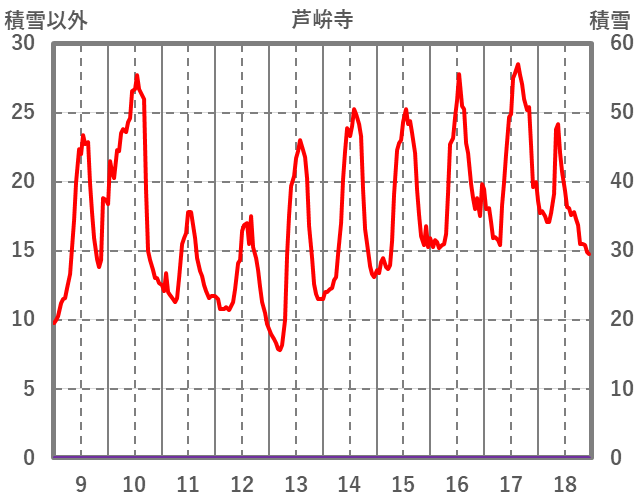 | 日 | 時 | 気温 | 降水 | 風向/風速 | 日照 | 積雪 | 降雪 |