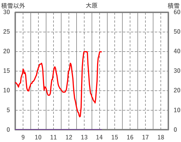 | 日 | 時 | 気温 | 降水 | 風向/風速 | 日照 | 積雪 | 降雪 |
