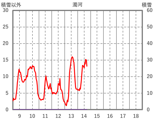 | 日 | 時 | 気温 | 降水 | 風向/風速 | 日照 | 積雪 | 降雪 |