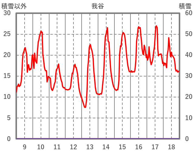 | 日 | 時 | 気温 | 降水 | 風向/風速 | 日照 | 積雪 | 降雪 |