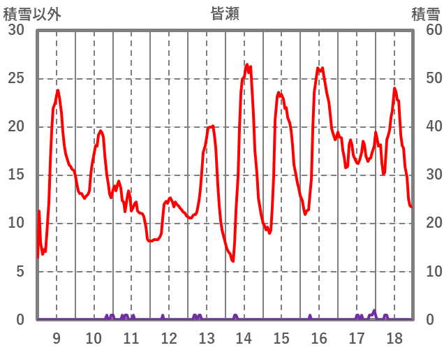 | 日 | 時 | 気温 | 降水 | 風向/風速 | 日照 | 積雪 | 降雪 |