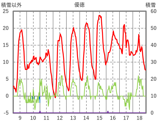 | 日 | 時 | 気温 | 降水 | 風向/風速 | 日照 | 積雪 | 降雪 |
