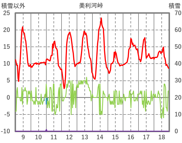 | 日 | 時 | 気温 | 降水 | 風向/風速 | 日照 | 積雪 | 降雪 |