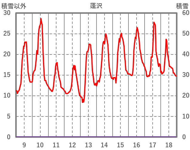 | 日 | 時 | 気温 | 降水 | 風向/風速 | 日照 | 積雪 | 降雪 |