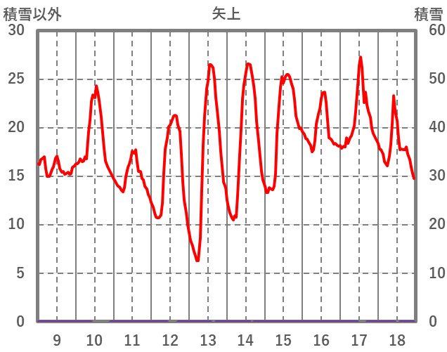 | 日 | 時 | 気温 | 降水 | 風向/風速 | 日照 | 積雪 | 降雪 |