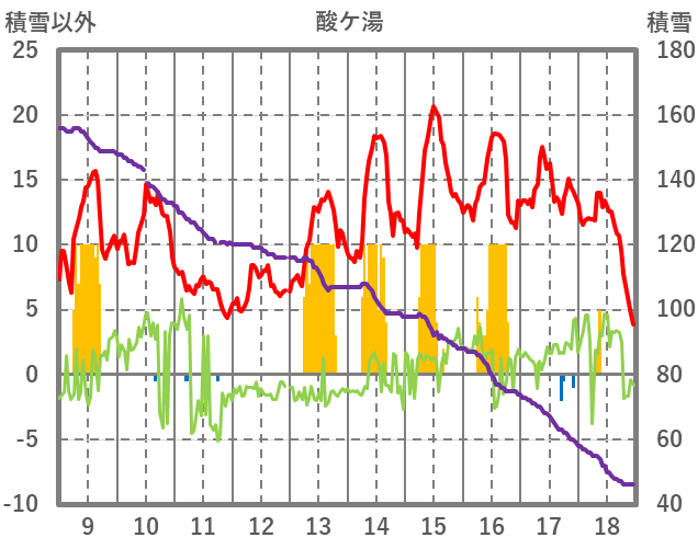 | 日 | 時 | 気温 | 降水 | 風向/風速 | 日照 | 積雪 | 降雪 |
